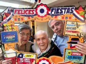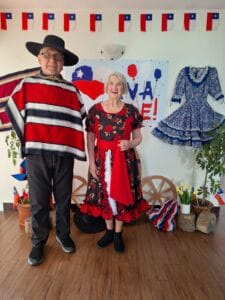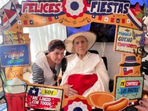 Y como no hay cueca sin baile, también nos acompañaron parejas que nos deleitaron con su destreza y pasión por nuestra danza nacional. Su energía fue contagiosa, y varios de nuestros residentes y miembros del equipo se animaron a dar unos pasos, demostrando que el espíritu dieciochero se lleva en el corazón, sin importar la edad. La música y el baile han demostrado ser beneficiosos para las personas con Alzheimer, estimulando la memoria y la interacción social.