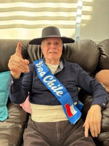 Este año, la celebración tuvo un toque aún más especial. Tuvimos la alegría de contar con músicos invitados que llenaron el ambiente con los acordes de cuecas y tonadas tradicionales. El sonido de las guitarras y los panderos transportó a muchos de nuestros residentes a sus años mozos, despertando emociones y recuerdos que se reflejaban en sus miradas.